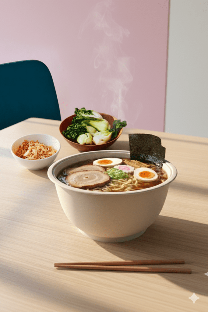 Rami solves these problems by placing the noodles in a separate upper compartment, acting like a lid, while the broth stays below. This keeps the noodles from softening too quickly and preserves their texture and flavor. When the noodles are combined with the hot broth just before eating, it creates a fresh, enjoyable ramen experience.