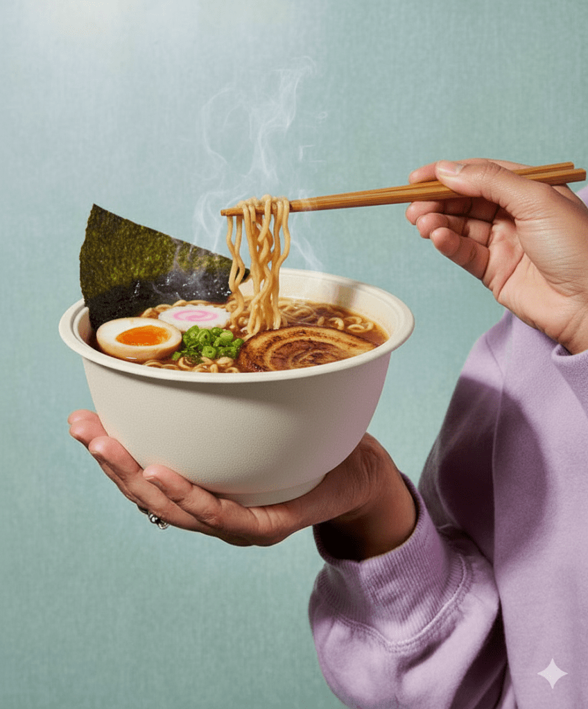 Additionally, this combination of materials not only ensures a sustainable solution but also enhances the user experience by keeping the noodles fresh and the broth hot until mealtime, reflecting a commitment to both quality and environmental responsibility.