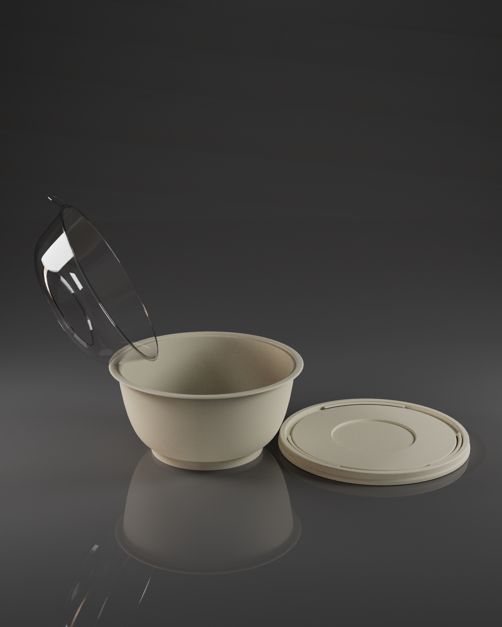 In this container design, sustainability and lifecycle considerations are a top priority. Materials such as bamboo and algae are sourced from natural and renewable resources. Although the container is single-use, it fully decomposes in nature, can be composted, and is recyclable, minimizing environmental impact.
